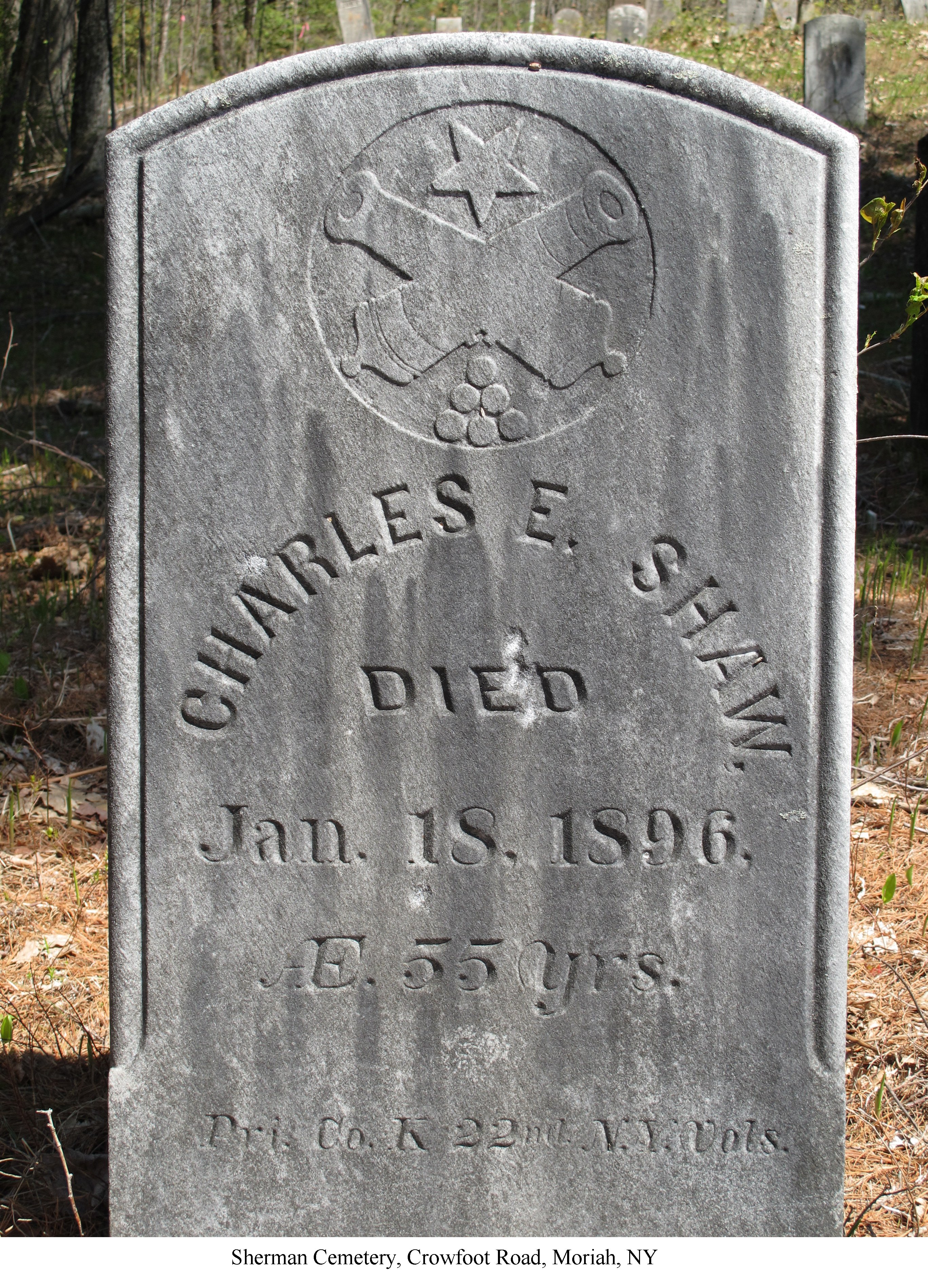 Charles E. died Jan. 18, 1896 Æ 55 yrs. Pvt.